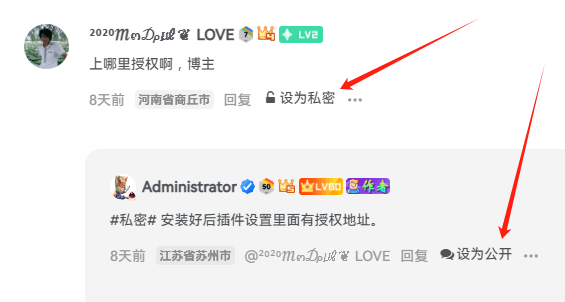 $flag .= ' - <a href="javascript:;" data-actionp="set_private" data-idp="' . get_comment_id() . '" id="sp" class="sm">(<span class="has_set_private">设为私密</span>)</a>';