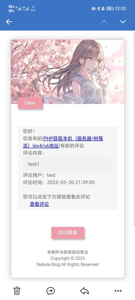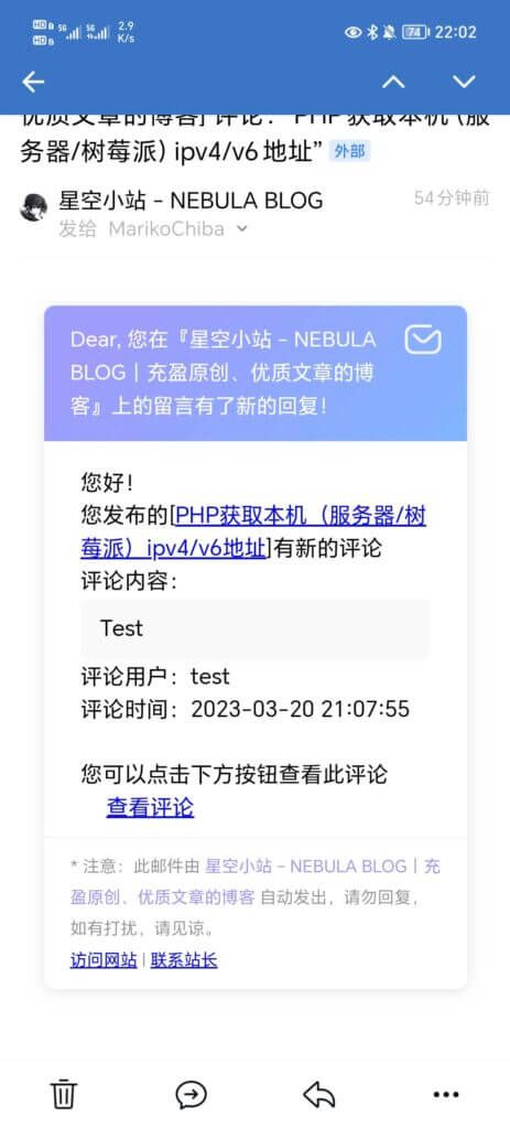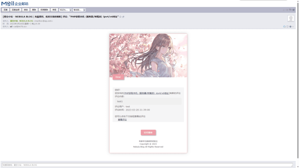 基于 星空未屿 博客邮件修改