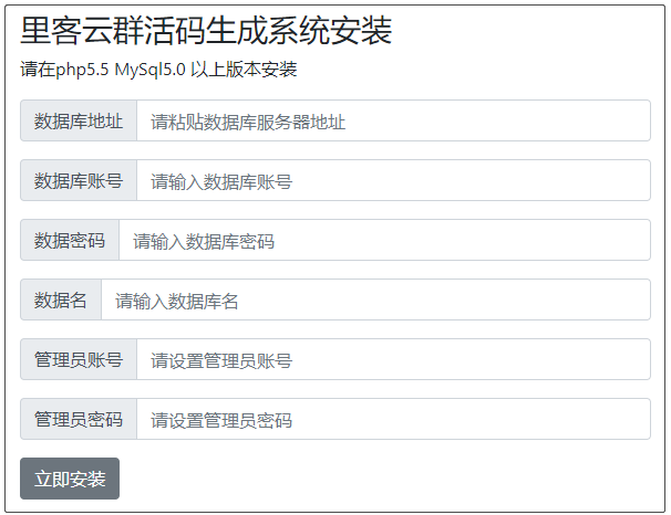 只需要输入数据库和管理员相关信息,即可快速安装,如果安装失败,请检查数据库配置是否填写正确,如果您的服务器没有创建文件的权限,请在安装前给予777权限。