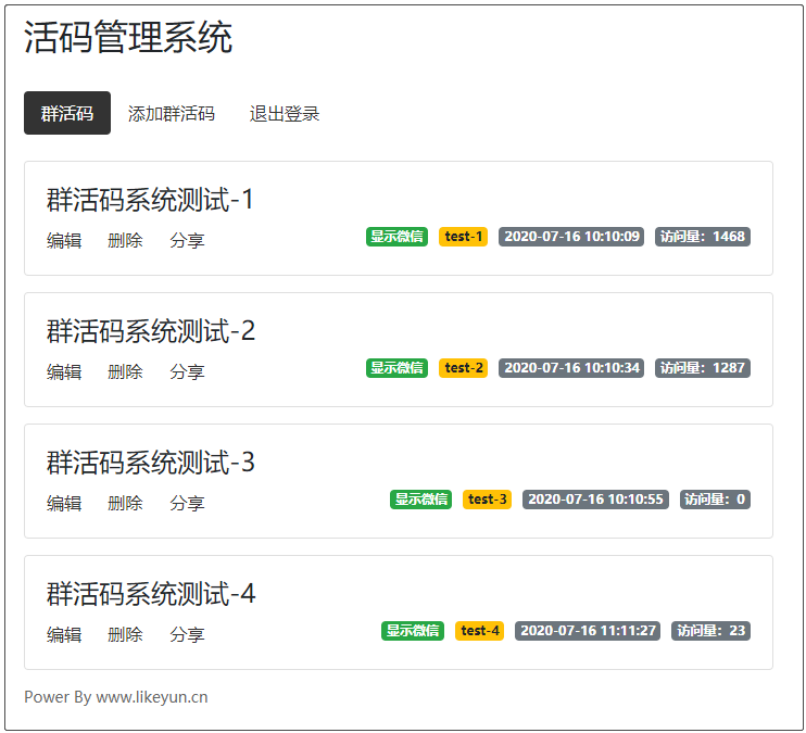 1、创建微信群活码、可添加群主微信二维码、可统计二维码访问量