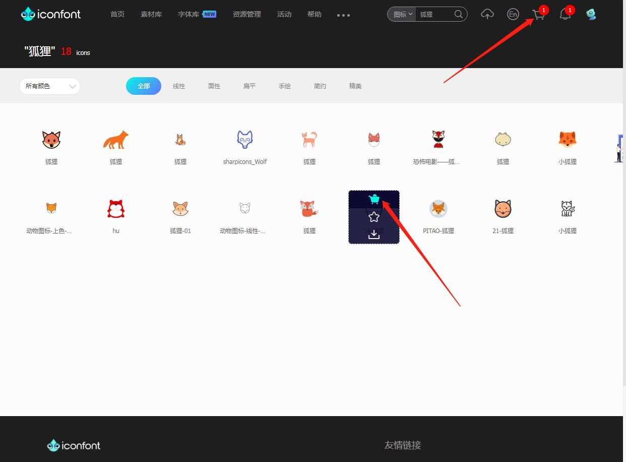 第三步:登入之后返回首页搜索需要的图标-如下图