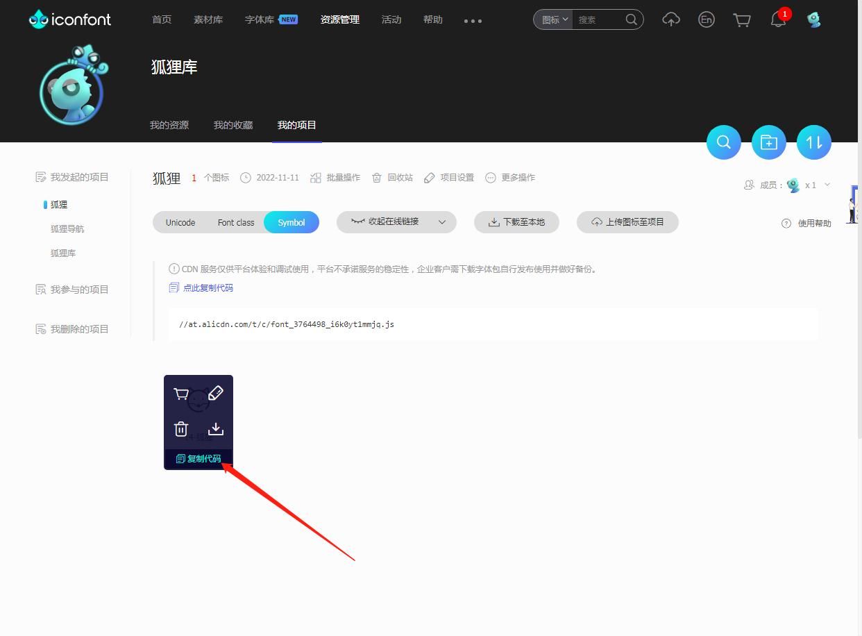 1、代码中的【加入你的图标代码】就是你在阿里巴巴矢量图库复制的 ico 代码: