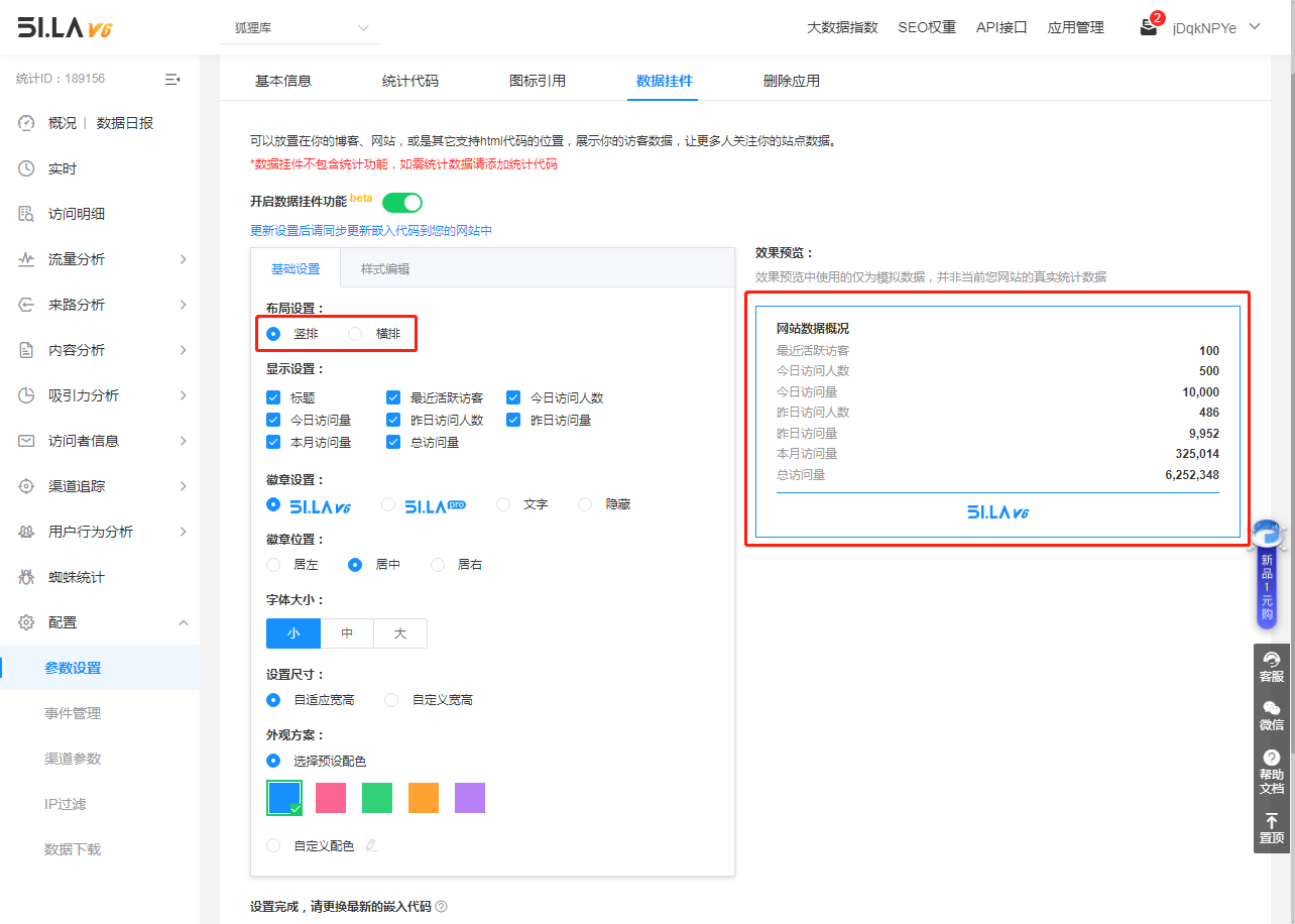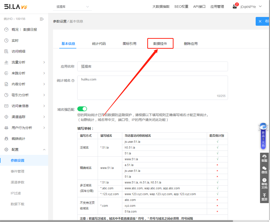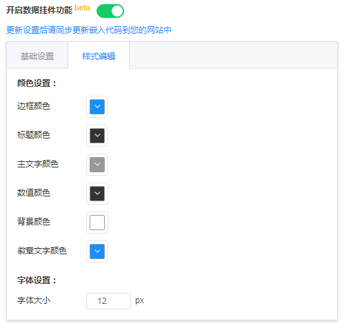 进入后台后去到 参数设置 >> 数据挂件