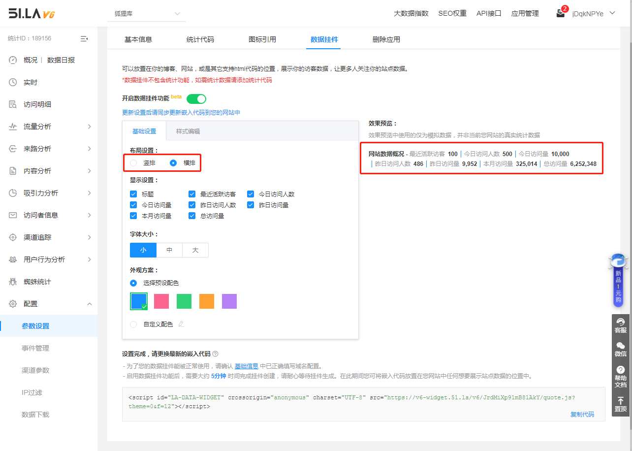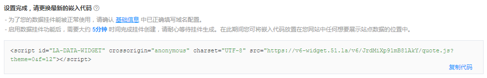 设置完成后记得复制下列代码。