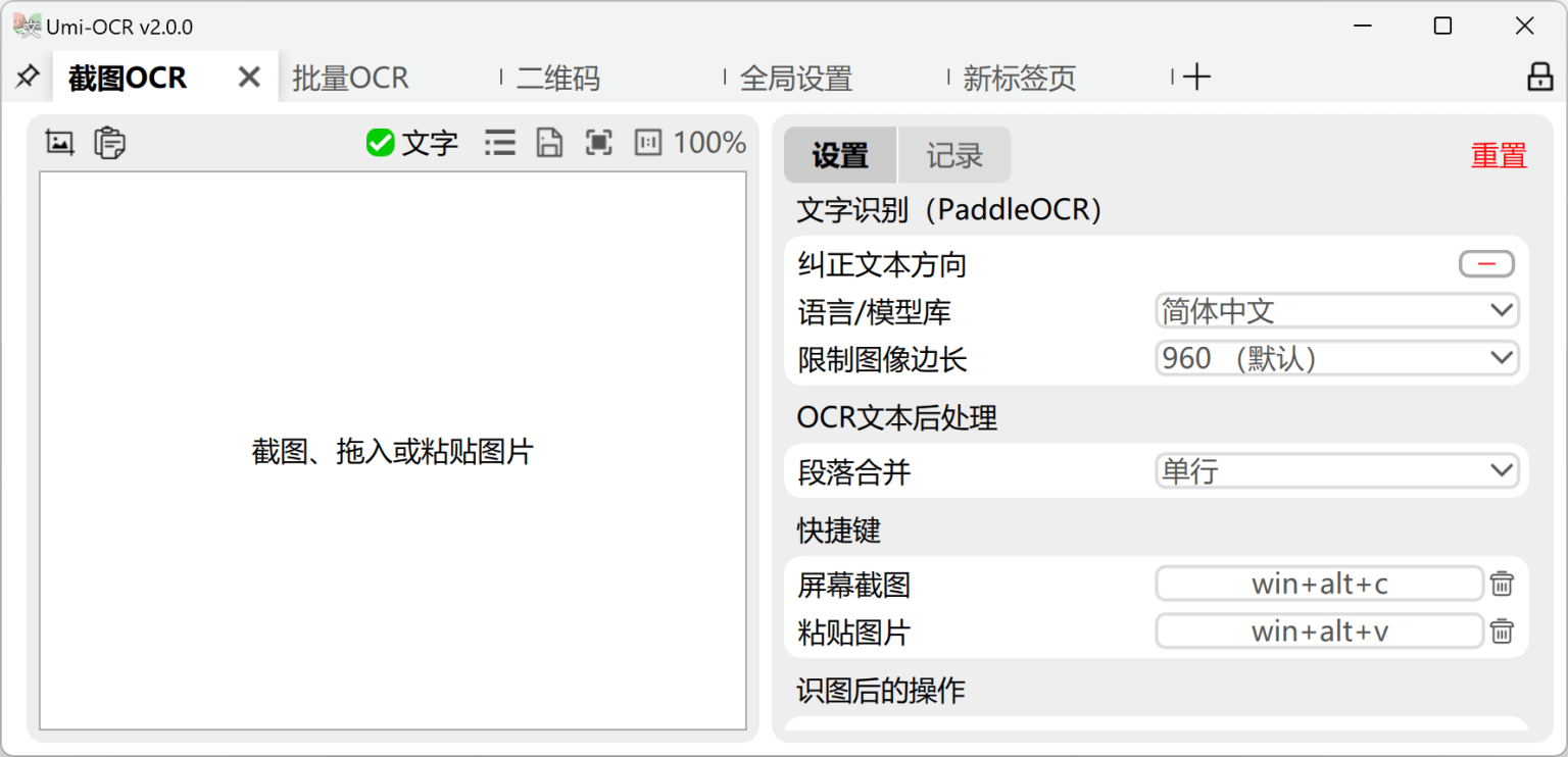 本软件无需安装。解压后,点击 Umi-OCR.exe 即可启动程序。