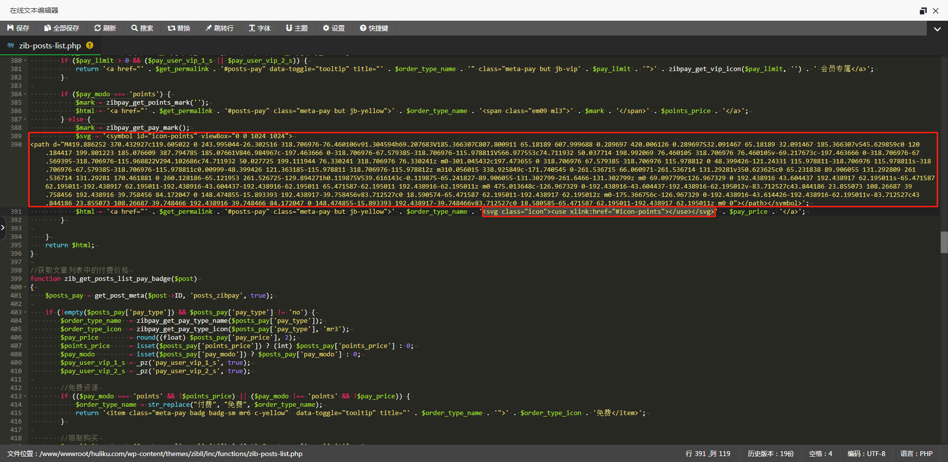 很多使用子比主题的站长朋友都感觉付费资源图标显示太长,都有意想修改为图标显示,子比官网也有人分享过这方面的教程,但是需要付费购买,狐狸库找了下相关教程,做一下记录,也跟大家分享一下怎么改掉它!