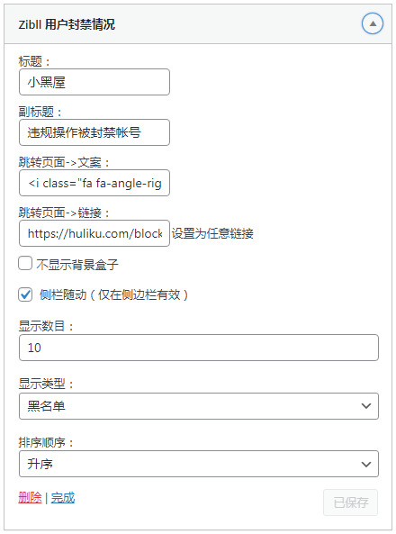 小工具找到 Zibll用户封禁情况 然后填写信息 发布(这里推荐放在侧板栏)