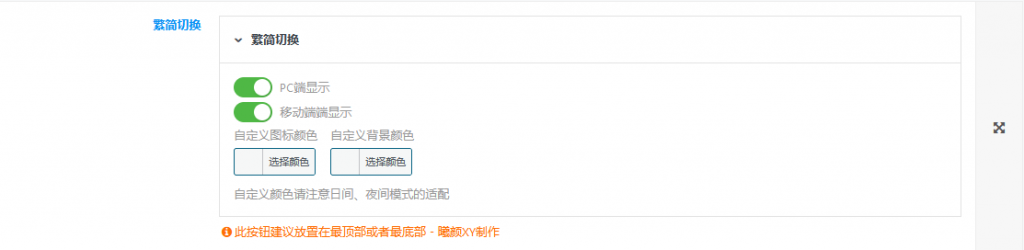 'desc' => '<div class="c-yellow"><i class="fa fa-fw fa-info-circle fa-fw"></i>此按钮建议放置在最顶部或者最底部 - 曦颜XY制作</div>',