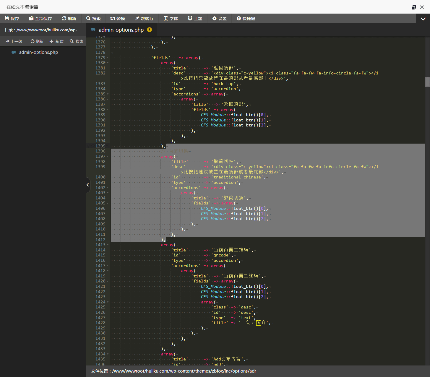文件路径:/wp-content/themes/zibll/inc/options/admin-options.php