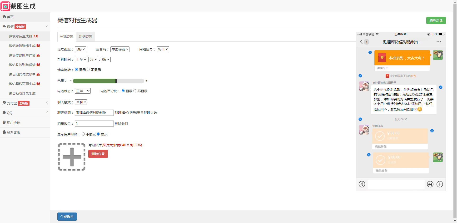 在线一键制作各种截图生成,包含生成功能: