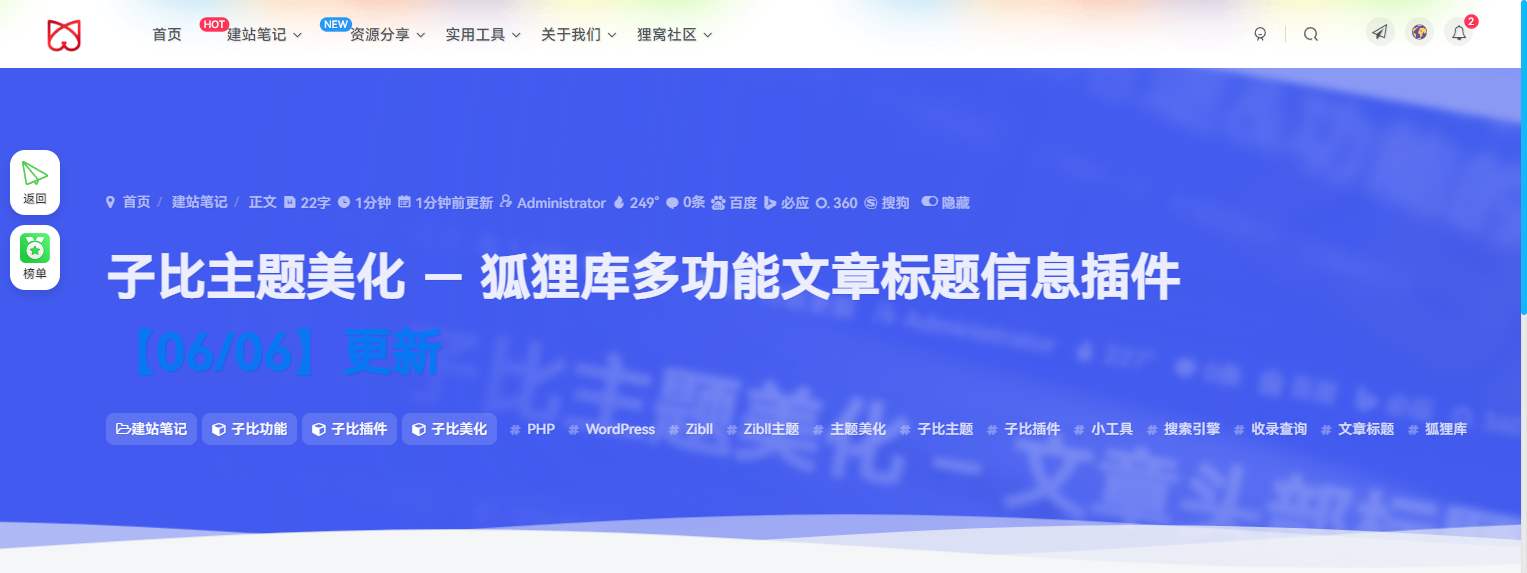 ![WordPress子比主题美化教程合集[2023/04/17]-狐狸库](https://huliku.com/pic/2023032607024935.png)