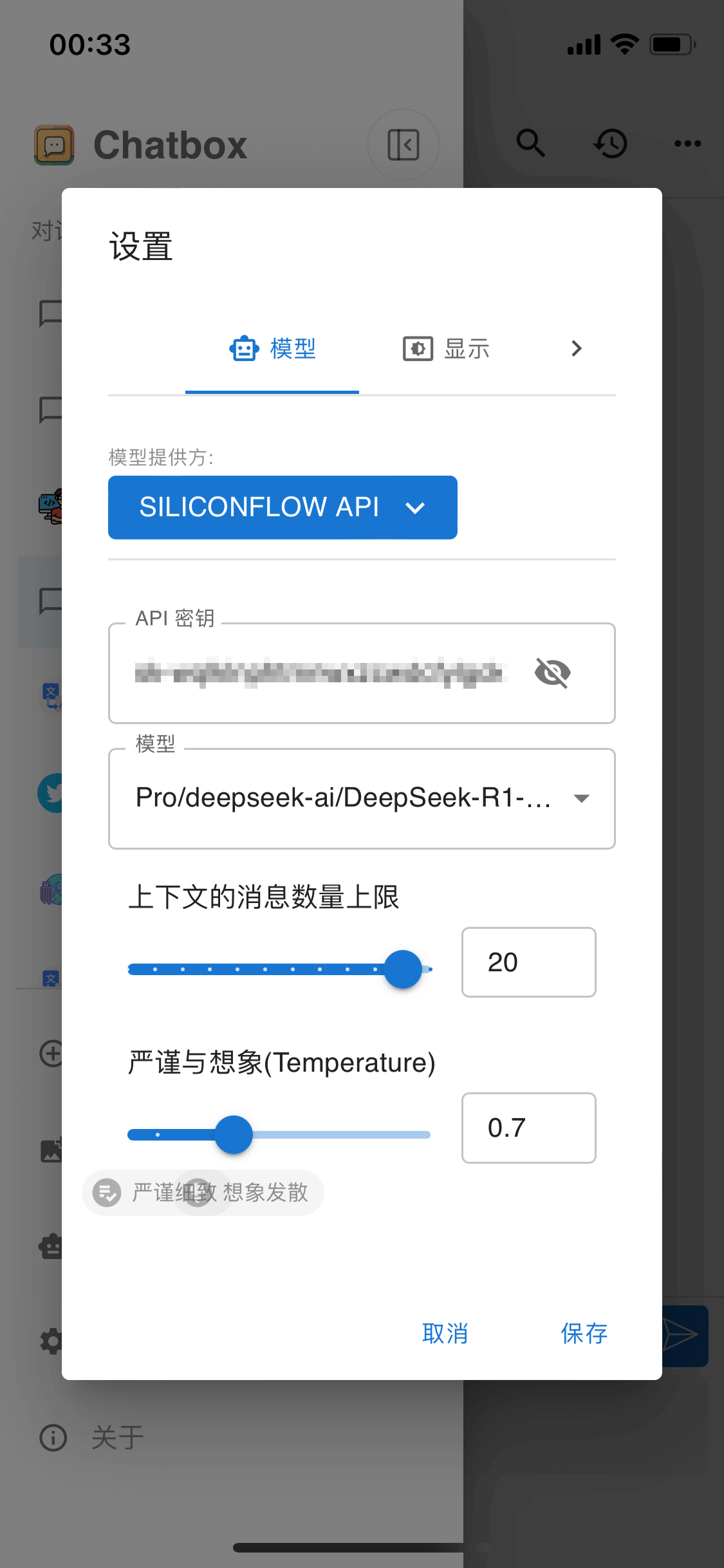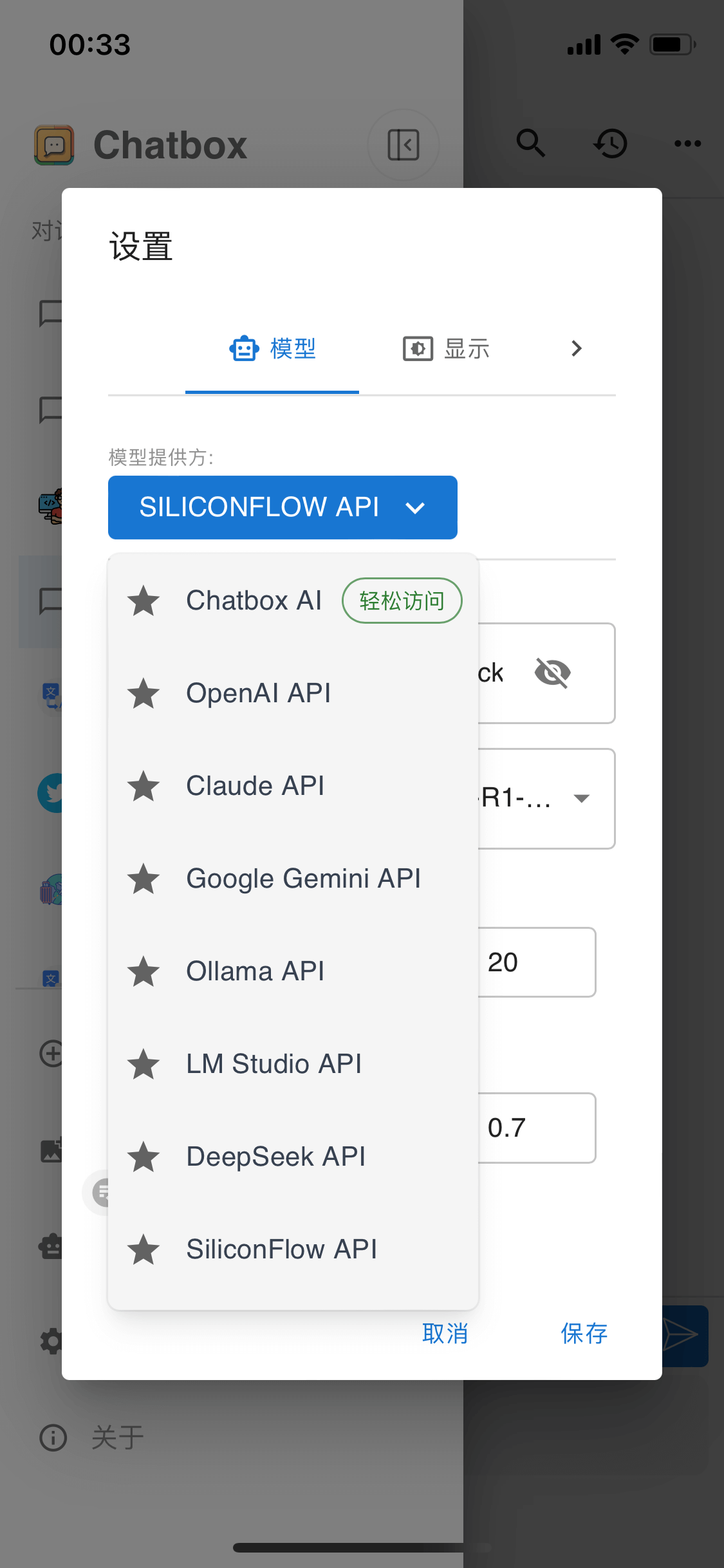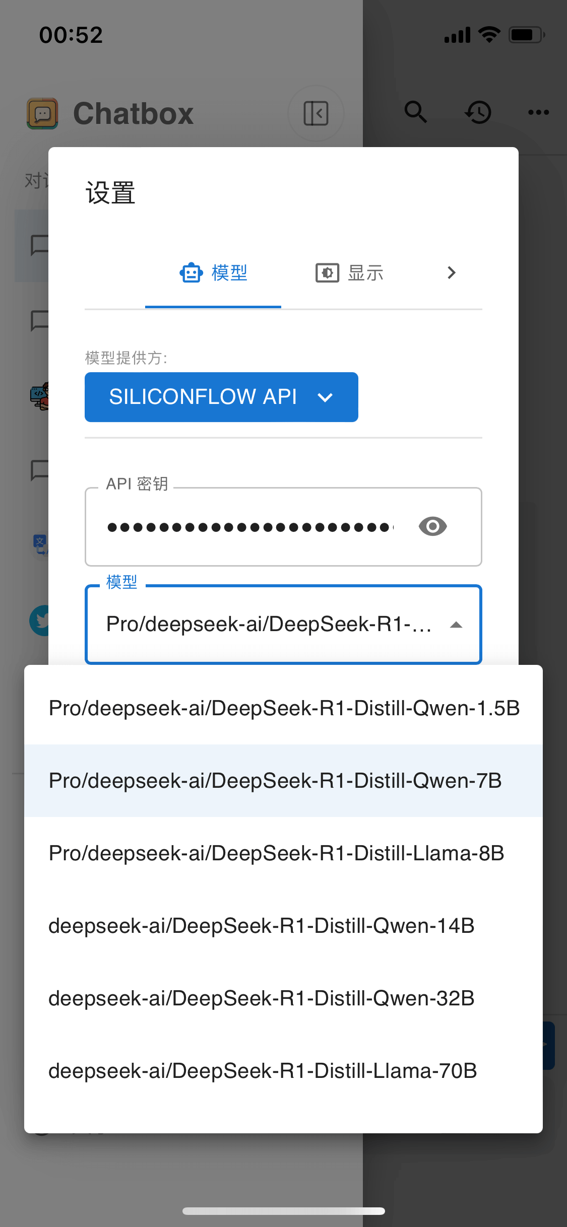 2、打开 Chatbox 软件,模型这里我们选择 SiliconFlow API 。