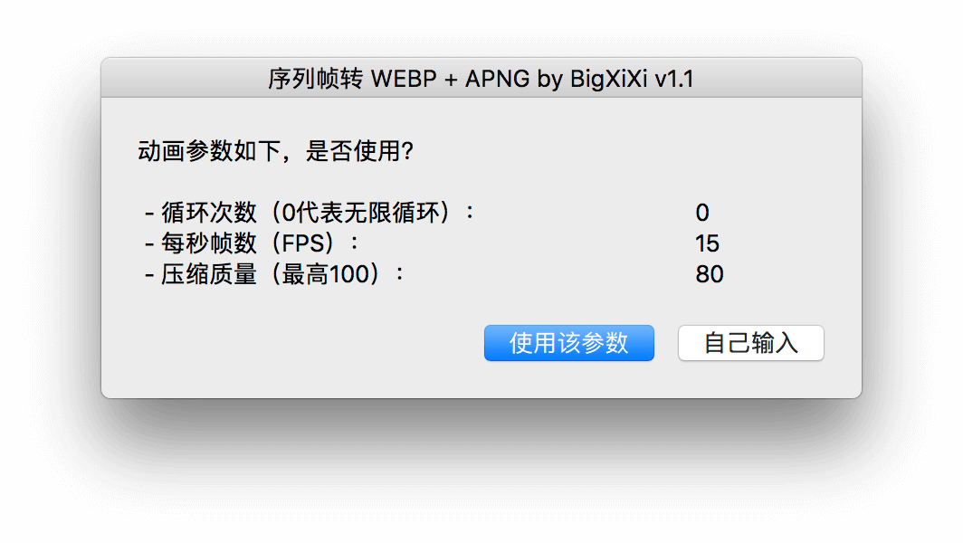 使用序列帧转webp + apng动画小工具这个工具进行转换。