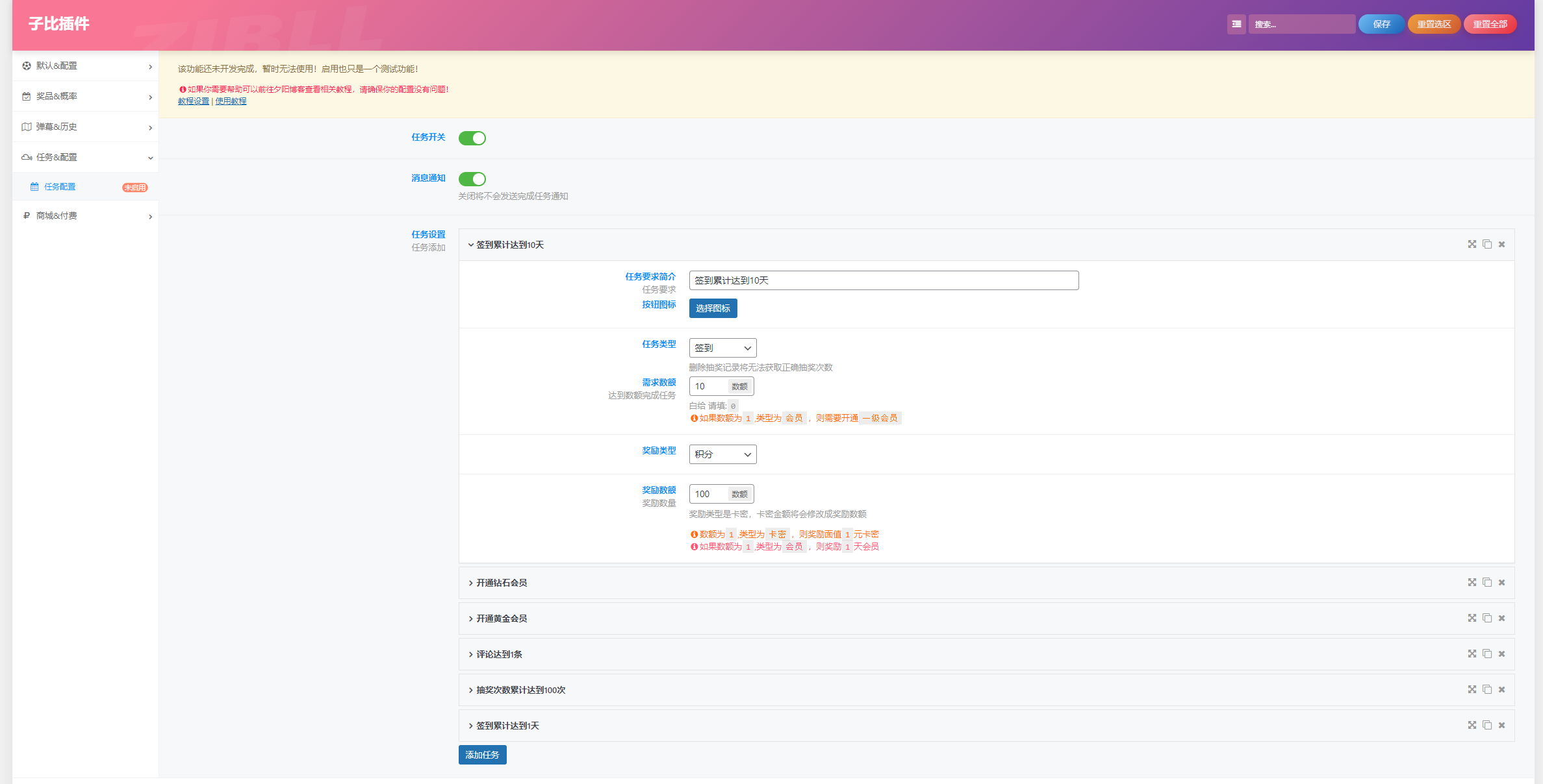 新增签到翻牌功能,该功能搭配子比签到使用,如果关闭签到功能,该功能是不可用的!