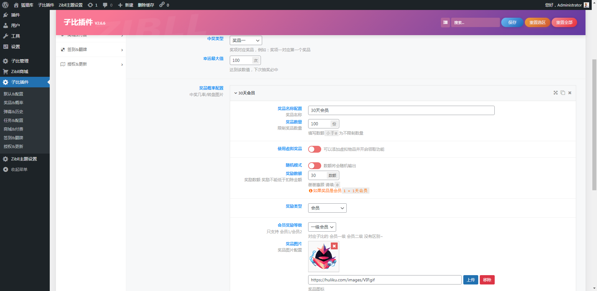 - 抽奖插件只适用于zibll主题