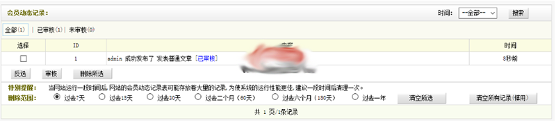 织梦的会员动态,默认是会对会员的【添加文档】【添加好友】【评论】【收藏夹】等操作进行记录,但是官方默认程序里这个记录有BUG