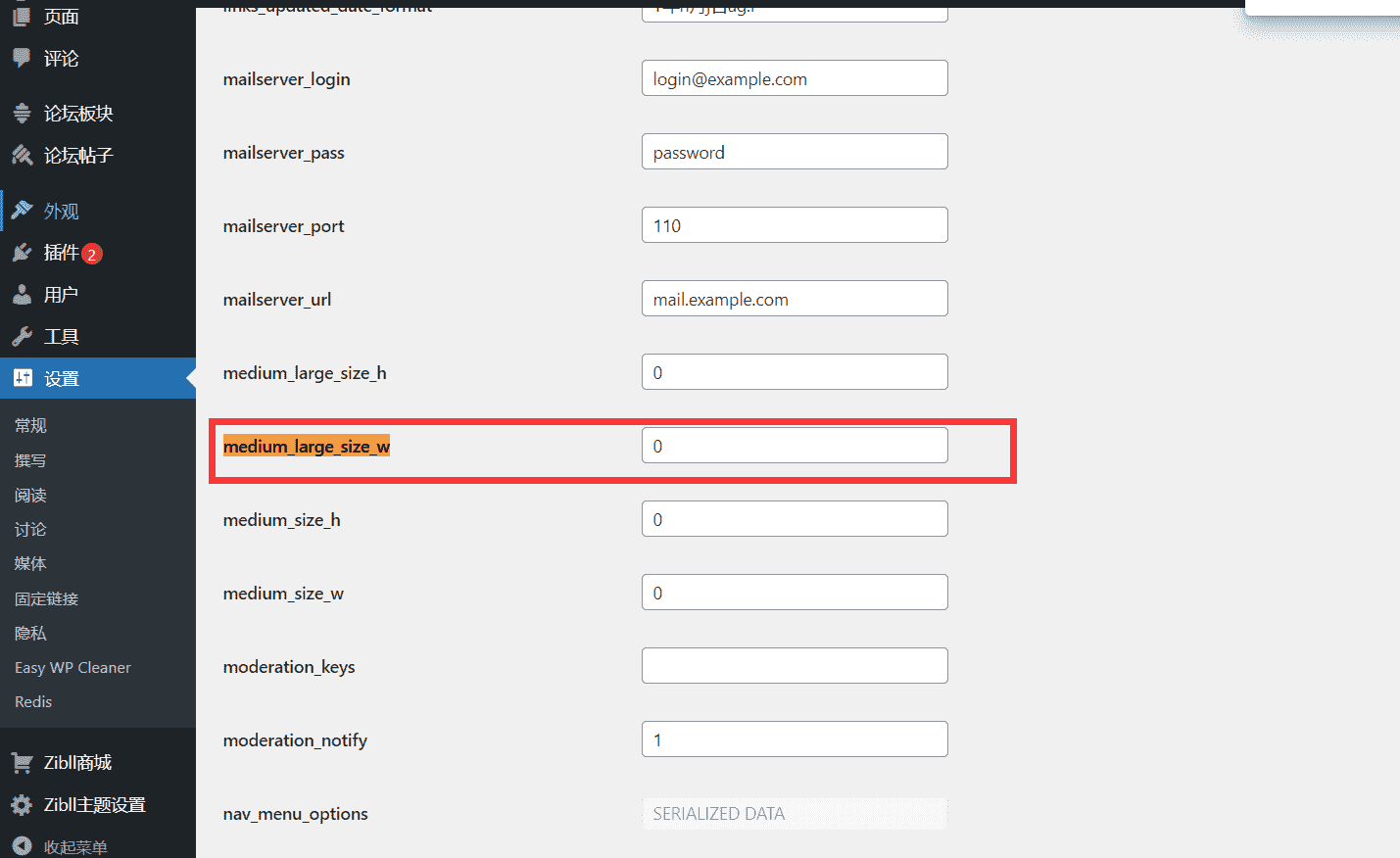 medium_large_size_w 选项,将其设置为0 即可。记得点保存按钮!(此页面很长,使劲往下拉才看到到)