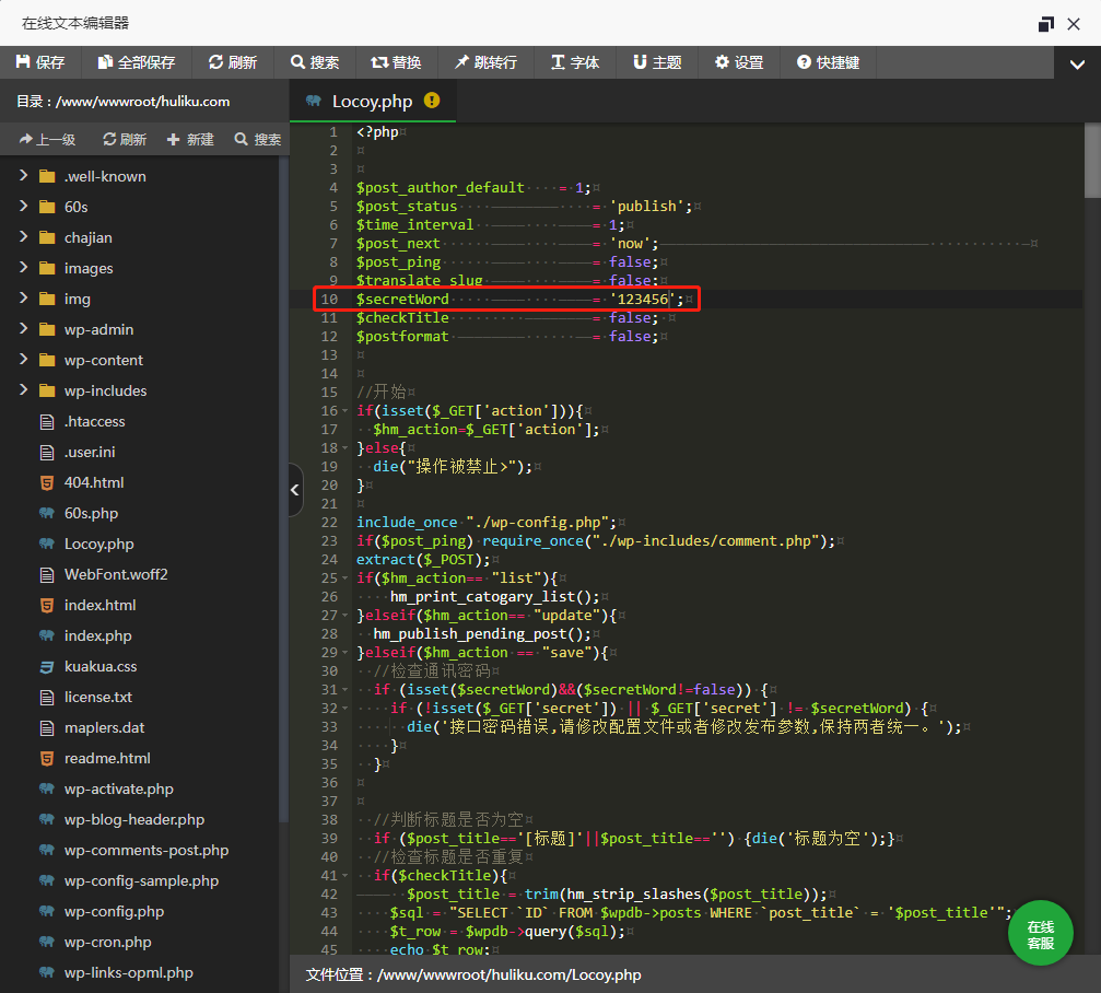 这个接口有个密码,默认是111,如果想要修改,就打开这个Locoy.php 修改: