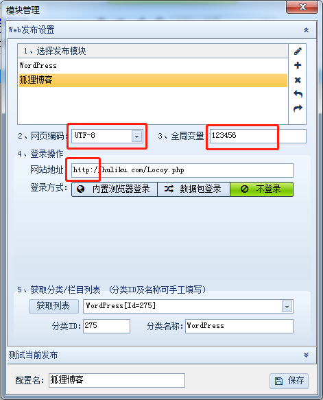免登录当然就不需要登录了。点击“获取列表”,获取到网站分类名称即为配置成功;点击“保存配置”,关闭窗口即可。